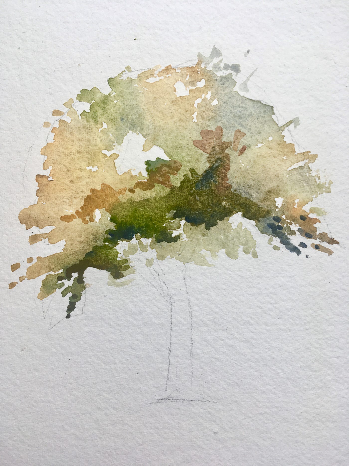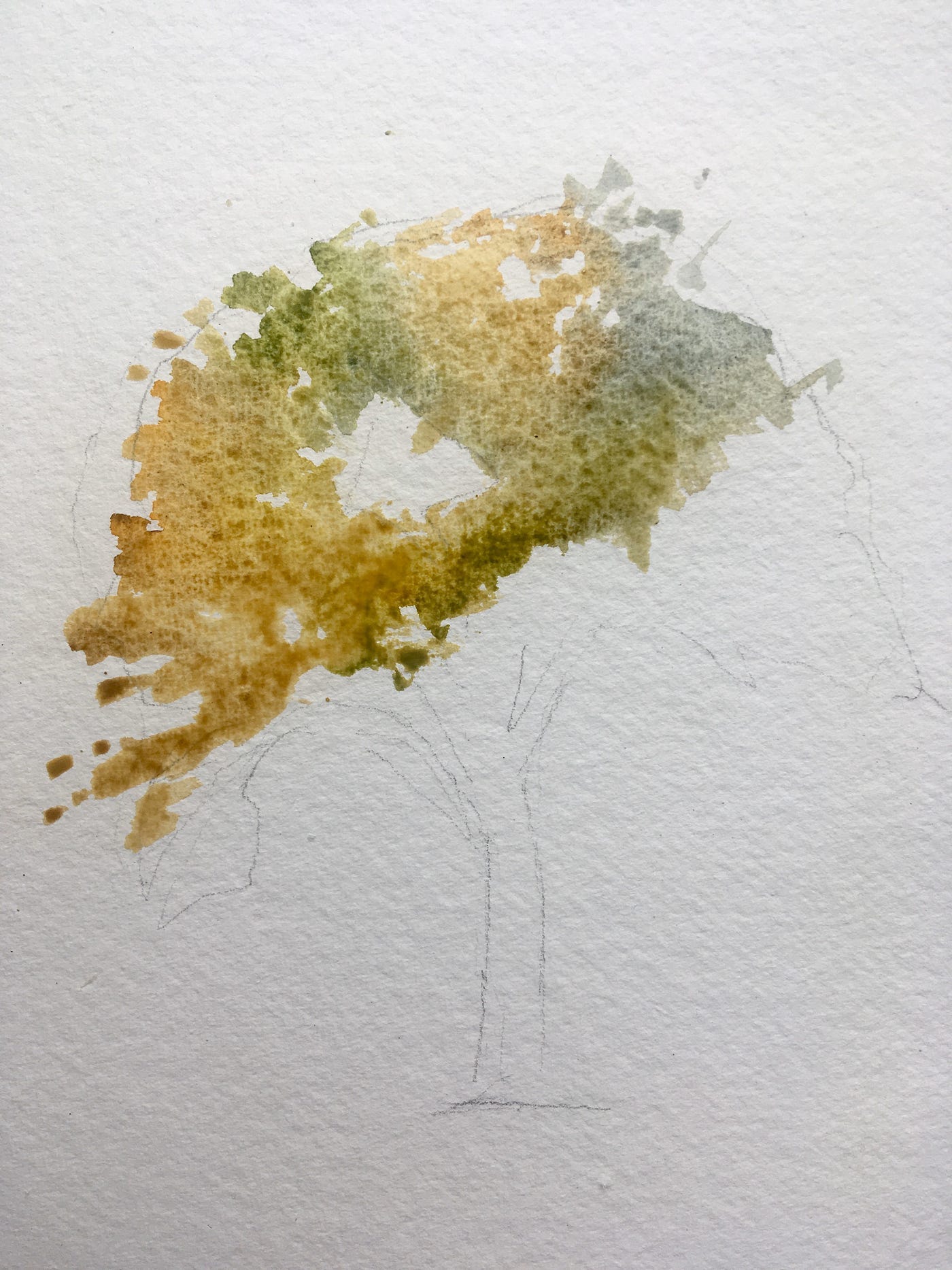 Painting trees in watercolours is a tricky business. My advice is to keep it as simple as possible and let the paints do their wonderful work.