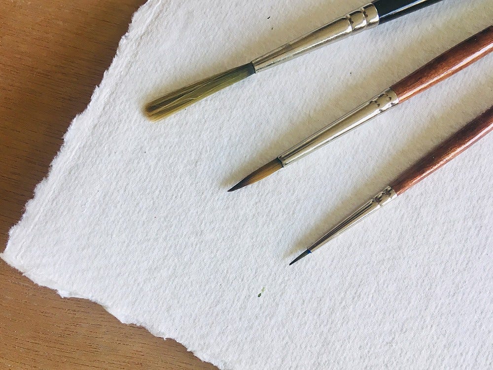 640gsm cotton rag paper: This is a fairly heavy paper that doesn’t crinkle when wet. That’s my preference. Anything above 300gsm should be good.